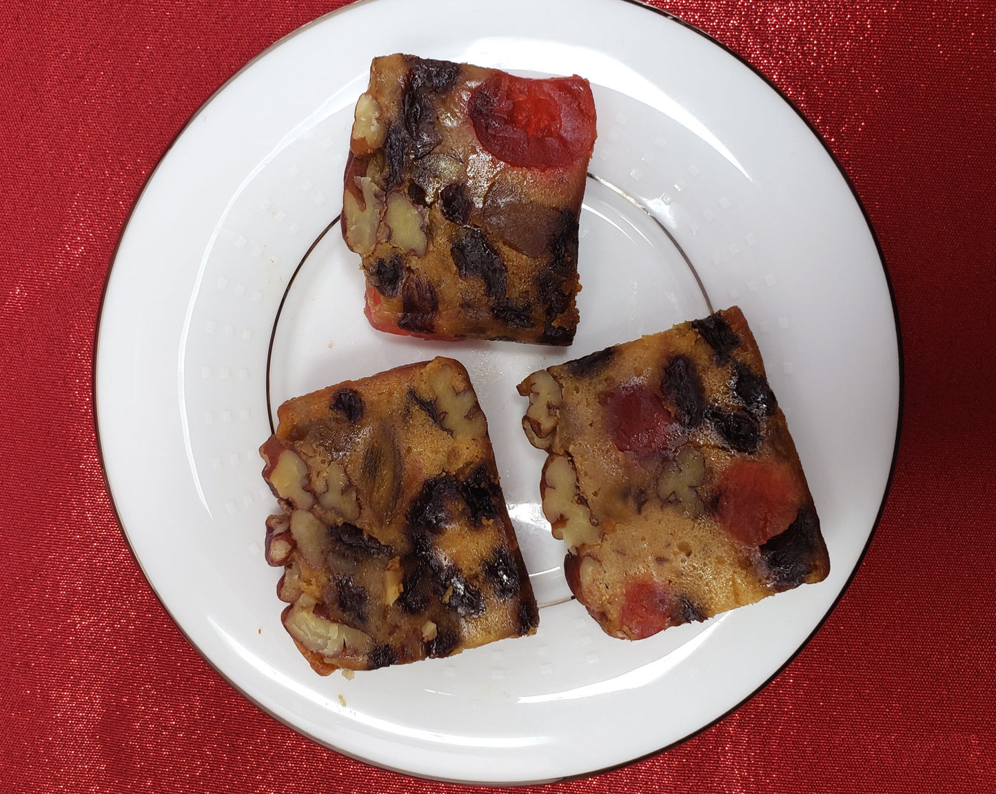Jane Parker Bourbon and Rum Fruitcake Slices in a Collectible Snowman Tin. The Original Jane Parker Classic Fruit Cake recipe baked with Bourbon and Caribbean Rum in 18 individually wrapped pieces in a decorative Snowman Tin. Generously filled with more than 2/3 luscious fruits and nuts. Baked in small batches, Jane Parker fruitcakes are available fresh throughout the year. Plump juicy raisins, glace red cherries, glace golden pineapple, orange peel, and crunchy pecans are just some of the fine ingredients in this Jane Parker Bourbon & Rum Fruit Cake. Prepared faithfully to the original recipe. Proudly baked in the USA. Stays fresh for 10-12 months at ambient temperature, 18 months under refrigeration. Great for sharing with a few friends, Perfect for a holiday gift, or just to enjoy a quick bite. The holiday snowman themed tin is great for decorating and to use for storage of your favorite goodies! Refrigeration recommended for at least 2 hours prior to slicing. May be stored for 12 months at room temperature, or under refrigeration for 18 months.