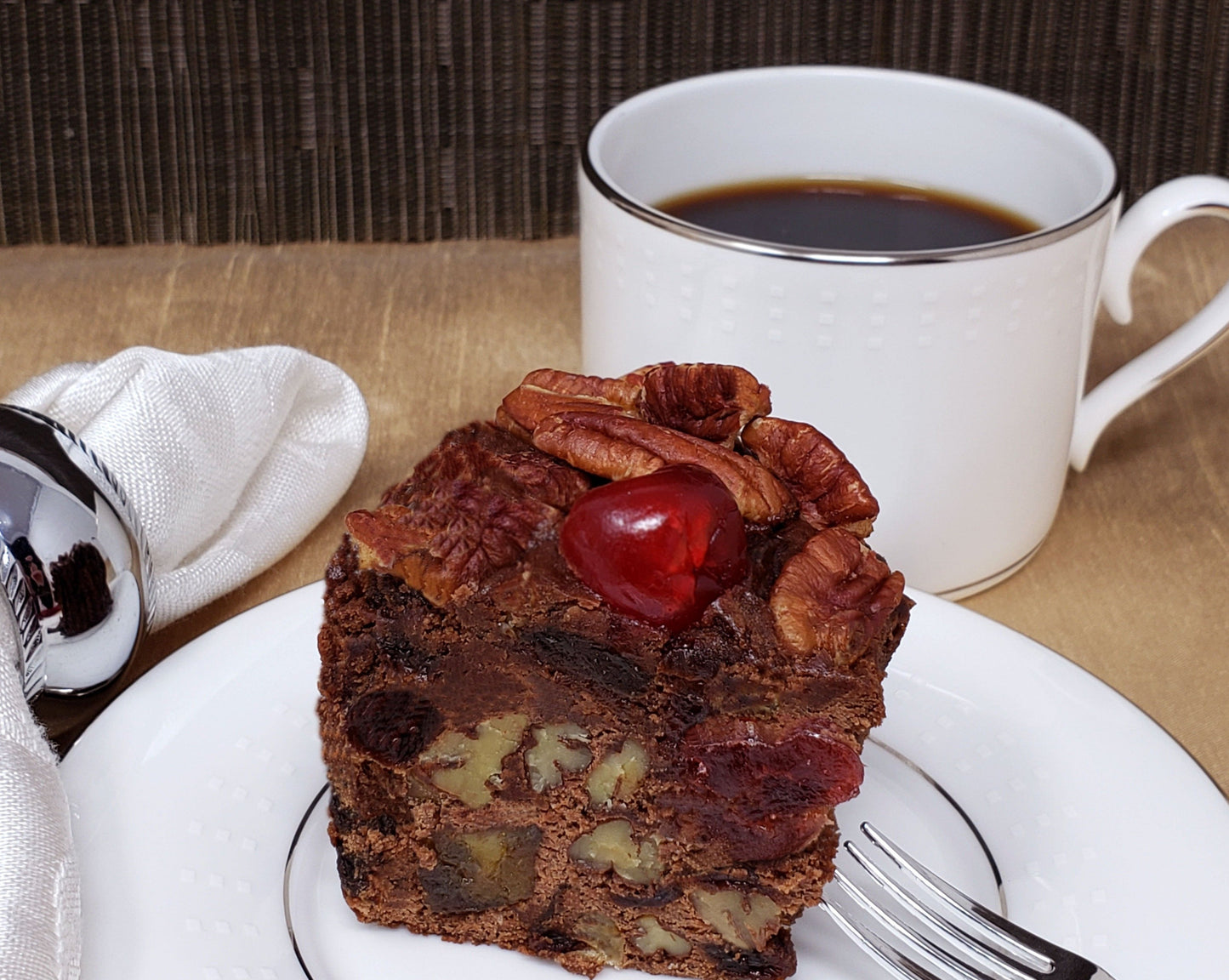 Introducing a new twist on a classic favorite; The Jane Parker Chocolate Fruit Cake 32 Ounce Ring. What could be better than a Classic Jane Parker Fruitcake? Adding some chocolate of course! The Original Jane Parker Classic Fruit Cake recipe, baked with cocoa powder. This Jane Parker Fruitcake is generously filled with more than 2/3 luscious fruits and nuts. Plump juicy raisins, glace red cherries, glace golden pineapple, orange peel, crunchy pecans, and cocoa powder are just some of the fine ingredients in this Jane Parker Chocolate Fruit Cake. Prepared faithfully to the original recipe. Proudly baked in the USA. This cake is great for a small gathering, and serves 10-16.